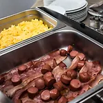 Κάθε πρωί προσφέρεται ιταλικό πρωϊνό, με διάφορες επιλογές. Το Hotel Esplanade διαθέτει à la carte restaurant, το οποίο σερβίρει πιάτα Italiaanse. Το ξενοδοχείο προσκαλεί τους πελάτες στο lounge bar για να χαλαρώσουν, πίνοντας ένα ποτό. Το κατάλυμα απέχει σχεδόν 400 μέτρα από το Britannia Bar & Cucina, το οποίο σερβίρει απολαυστικά γεύματα.